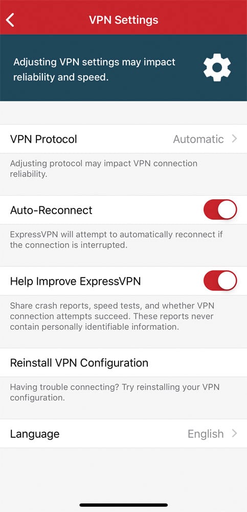 In addition, the service offers DNS leak protection and IPv6 leak protection, split tunneling and a built-in kill switch -- the last of which is not available on mobile apps. We can't blame ExpressVPN for this as this is pretty much given with all VPN mobile apps.