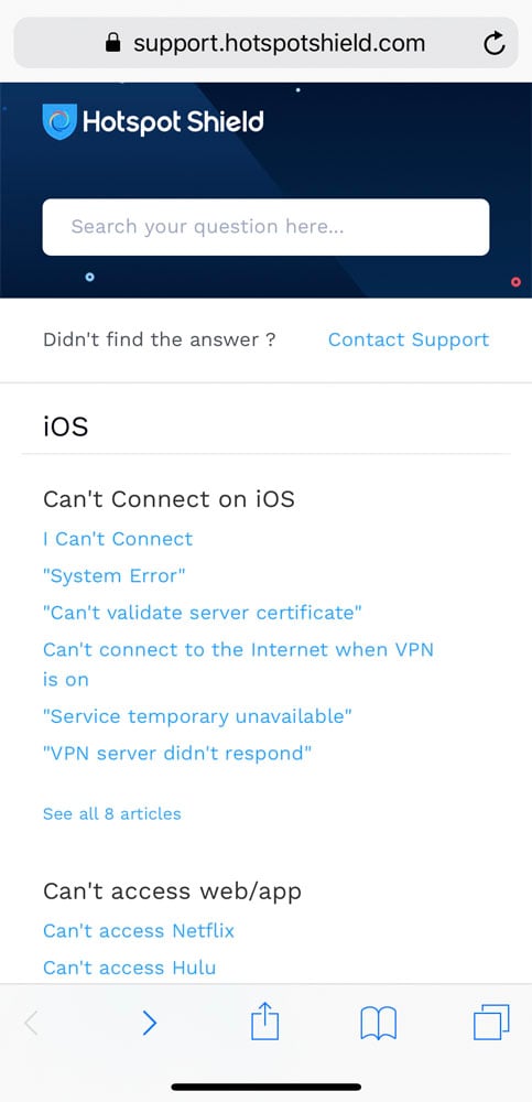 The first thing we check with any VPN service is whether it offers a 24/7 live chat support; and we're glad to report that Hotspot Shield does provide one. What's more, we were pleased to learn that this level of support is also available to both paying customers and non-customers -- those who may be thinking to pay for the service. This is super cool.Speaking of level of support -- we've got some well-informed responses from the support team. That, we have to repeat, is kinda expected given the fact that Hotspot Shield apps are among the easiest to use.