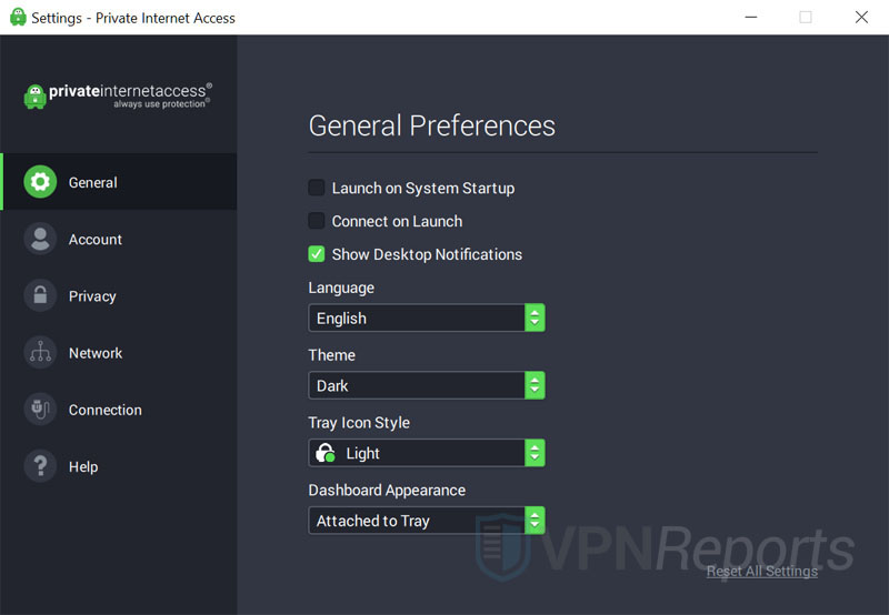 However, despite looking fairly simple, the PIA app offers plenty of customization options for things like notifications, launch on start-up, and a kill switch with an "always" option. And that's just a start with the "advanced settings" screen offering even more options to play with.