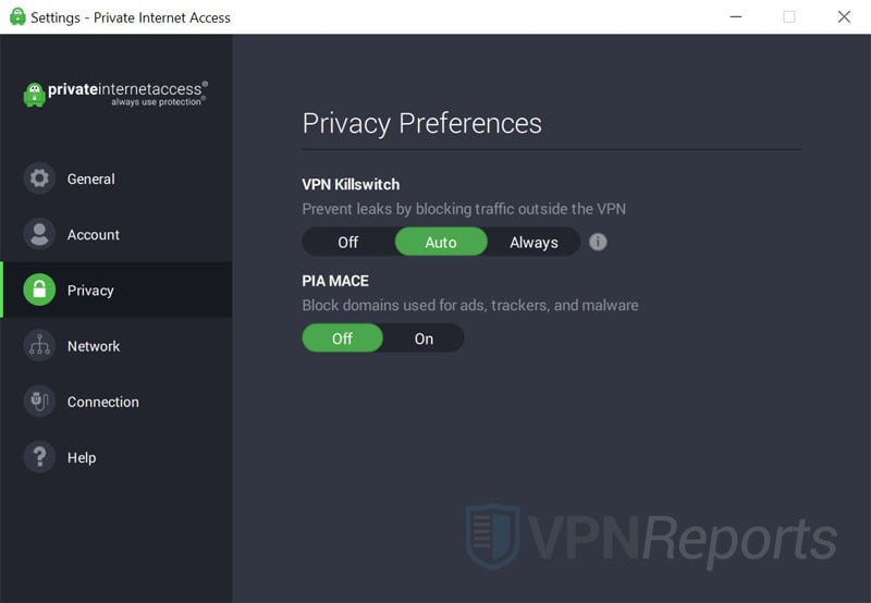 Private Internet Access offers high-end security features you would expect from a top provider. The service supports a few different protocols -- including OpenVPN, PPTP, IPSEC/L2TP and SOCKS5 (for proxies) -- that are paired with a couple of encryption options -- such as AES-256. Also included is a kill switch, and a malware blocker that acts like web firewall.
